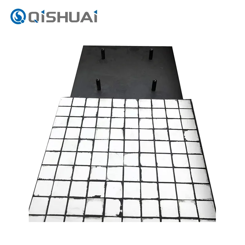 Prostredníctvom tepelnej vulkanizácie sú keramické, gumené a oceľové dosky pevne spojené, aby vytvorili robustnú integrovanú štruktúru. Každá keramická doska má priechodné skrutky prenikajúce spodnou oceľovou doskou a je bezpečne zvarená, čo zaisťuje, že počas používania nedôjde k odlúpnutiu keramiky.