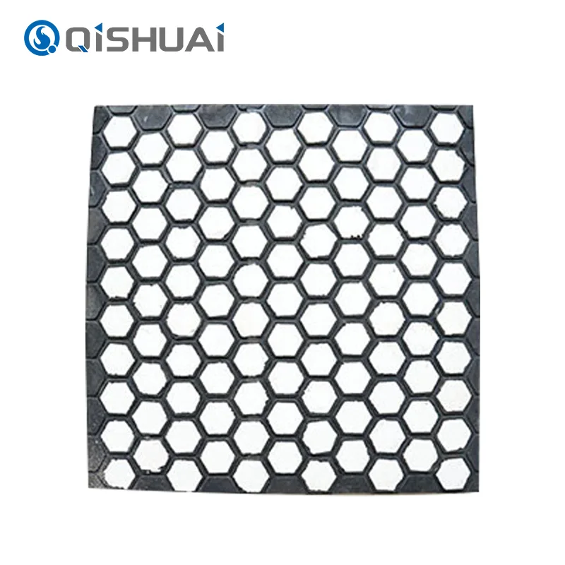 V procese vytvárania štruktúry je povrch keramiky ošetrený, ktorý mení povrch. Táto úprava zvyšuje vlastnosti povrchu a schopnosť povrchu vytvárať spojenie s vrstvou. Potom sa vyberie vysokovýkonné lepidlo s vynikajúcimi vlastnosťami lepenia a odolnosťou proti starnutiu, aby sa vytvorilo silné spojenie medzi keramikou a gumou. Za špecifických teplotných a tlakových podmienok procesy ako vulkanizácia plne integrujú lepidlo s keramikou aj gumou. To vytvára chemické spojenie a fyzické zapletenie, čím sa dosiahne tesné spojenie medzi keramickými dlaždicami a gumovými vrstvami. To zaisťuje celkový výkon a spoľahlivosť kompozitnej keramickej gumenej dosky. Dokonca aj pri intenzívnych nárazoch a vibráciách zostávajú keramické dlaždice a gumené vrstvy pevne spojené a spoločne poskytujú odolnosť proti opotrebovaniu a nárazu.