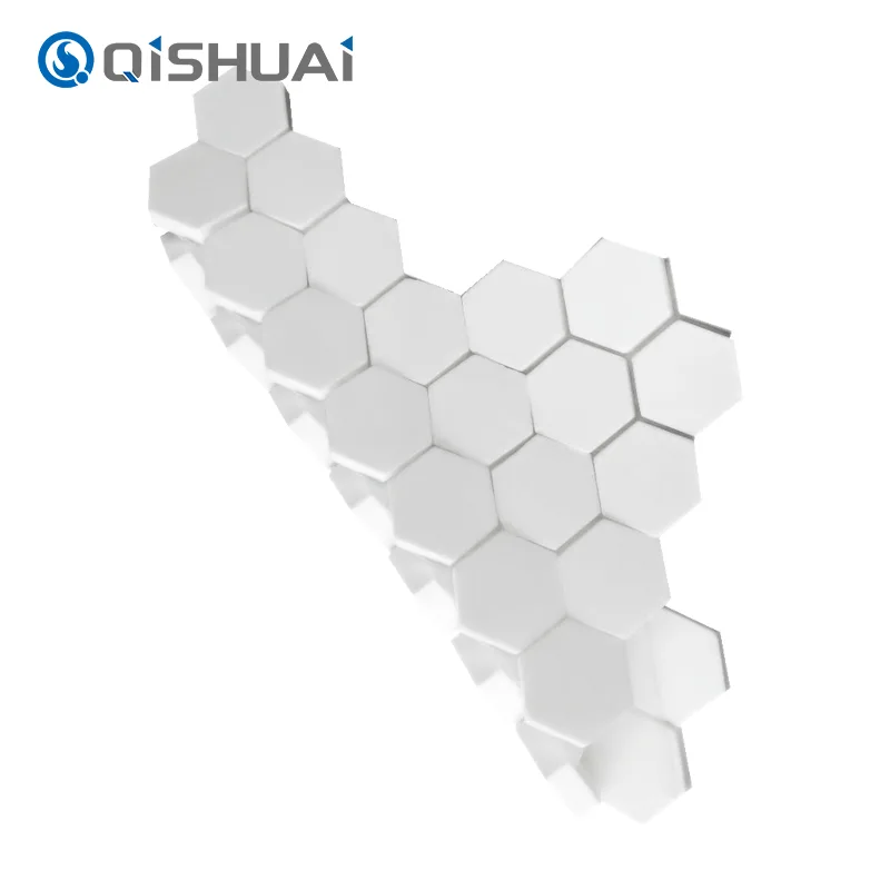 Vysokokvalitná šesťhranná keramická mozaika z oxidu hlinitého od spoločnosti Shandong Qishuai Wear-Resistant Equipment Co., Ltd., ako je znázornená, má charakteristický šesťhranný dizajn, ktorý ich odlišuje od bežných štvorcových alebo kruhových dlaždíc. Každá šesťuholníková keramická mozaika z oxidu hlinitého sa môže pochváliť hladkými, plynulými okrajmi s vynikajúcimi jasne viditeľnými detailmi.