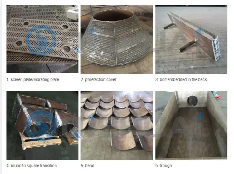 - Hlavné hriadele jednovalcového drviča hriadele jednovalcového drviča, zváranie prekrytím na opravu bram, sklzy trosky, rozdeľovacie kotúče, vibračné vložky podávačov, vložky vibračných tried, násypky na rudy, lopatky násypiek a komponenty odolné voči opotrebovaniu na dopravu vodnej trosky. Účinne odolávajú oteru vysokoteplotnou troskou, rudou a inými materiálmi, čím znižujú prestoje v zariadeniach na výrobu ocele a zabezpečujú stabilné výrobné operácie.
