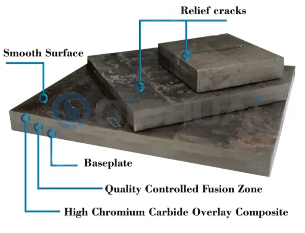 Prijímame pokročilú technológiu automatického navárania na nanášanie rôznych vysokovýkonných zliatin odolných voči opotrebovaniu na tvrdé oceľové plechy, čím vytvárame kompozitné materiály s „tvrdým vonkajším povrchom a pevným vnútrom“. Jeho hlavná výhoda spočíva v extrémne vysokej flexibilite: